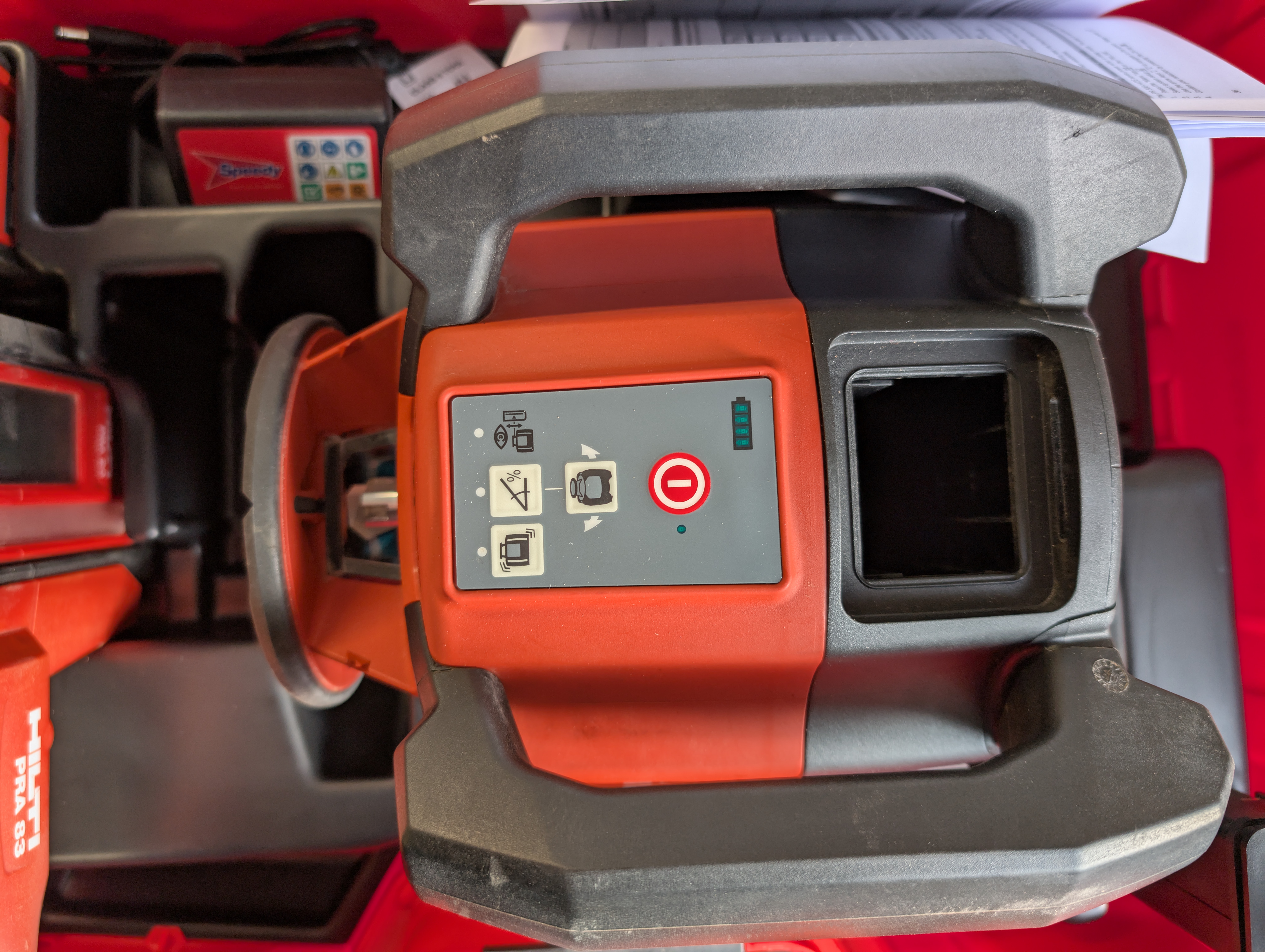 The Hilti PR 300-HV2S was hired from Speedy, we asked for a dual grade laser level and this is what we got. This wasn’t used on site, we tried and failed and so returned it. (I’m glad I didn’t buy one)